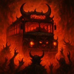 By Evelyn Ember The dusk-blood sky over Cinderopolis had barely begun to bruise when the Onyx Infernum slid to the curb with a hiss like a viper in prayer. Not a bus, not truly—more a rolling shrine to motion—its sides lacquered in pitch-black sheen and scrawled with lava-bright graffiti: warlords mid-roar, rapture-rap prophets with mic-crowns […]